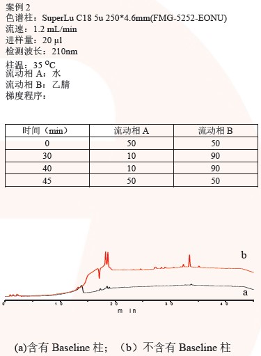 色譜柱可對(duì)流動(dòng)相或系統(tǒng)流路內(nèi)的強(qiáng)保留污染組分起到富集作用,在有機(jī)相比例隨梯度程序變化的過(guò)程中而被沖洗出來(lái)。