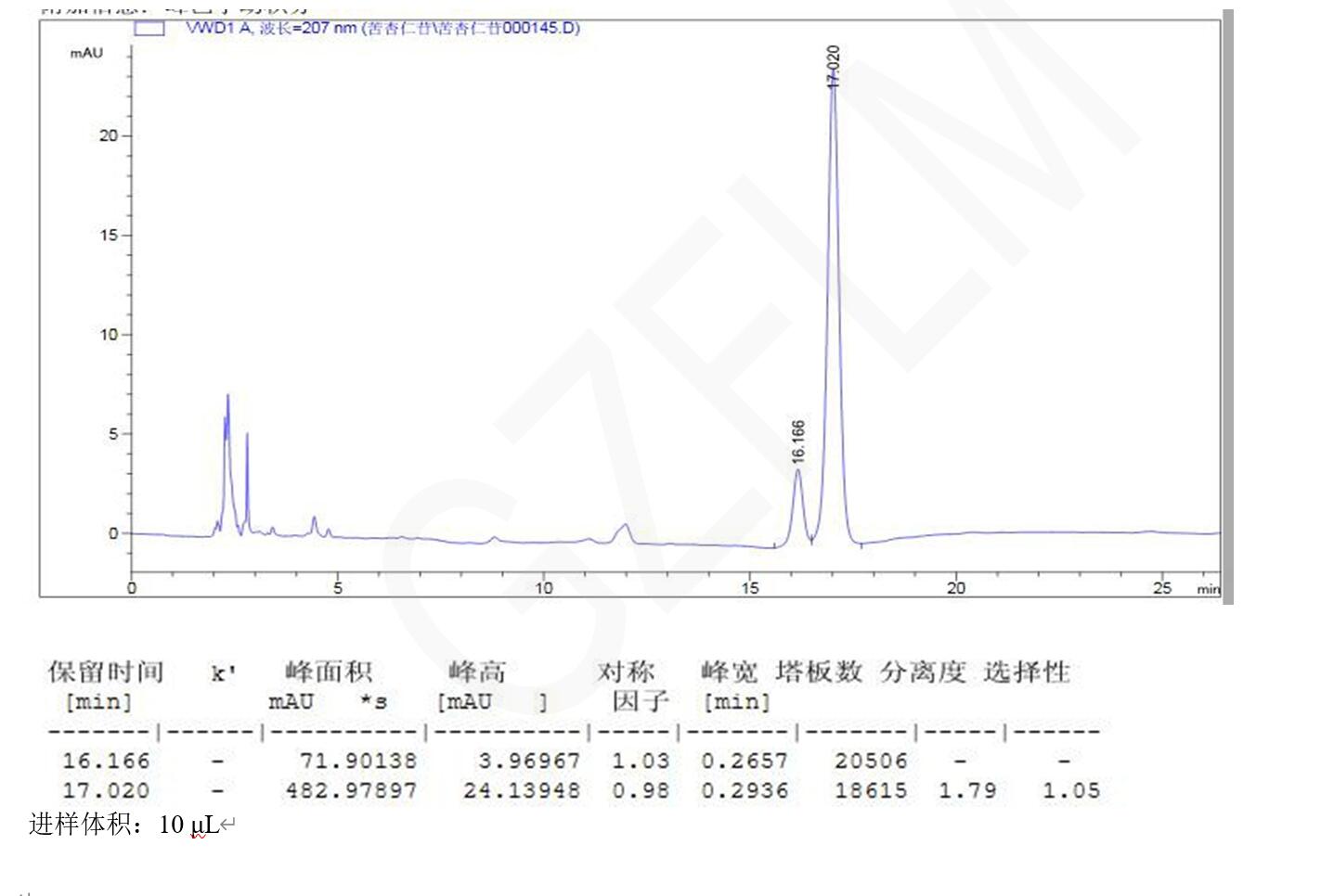高效液相色譜柱對(duì)苦杏仁中苦杏仁苷的檢測(cè)