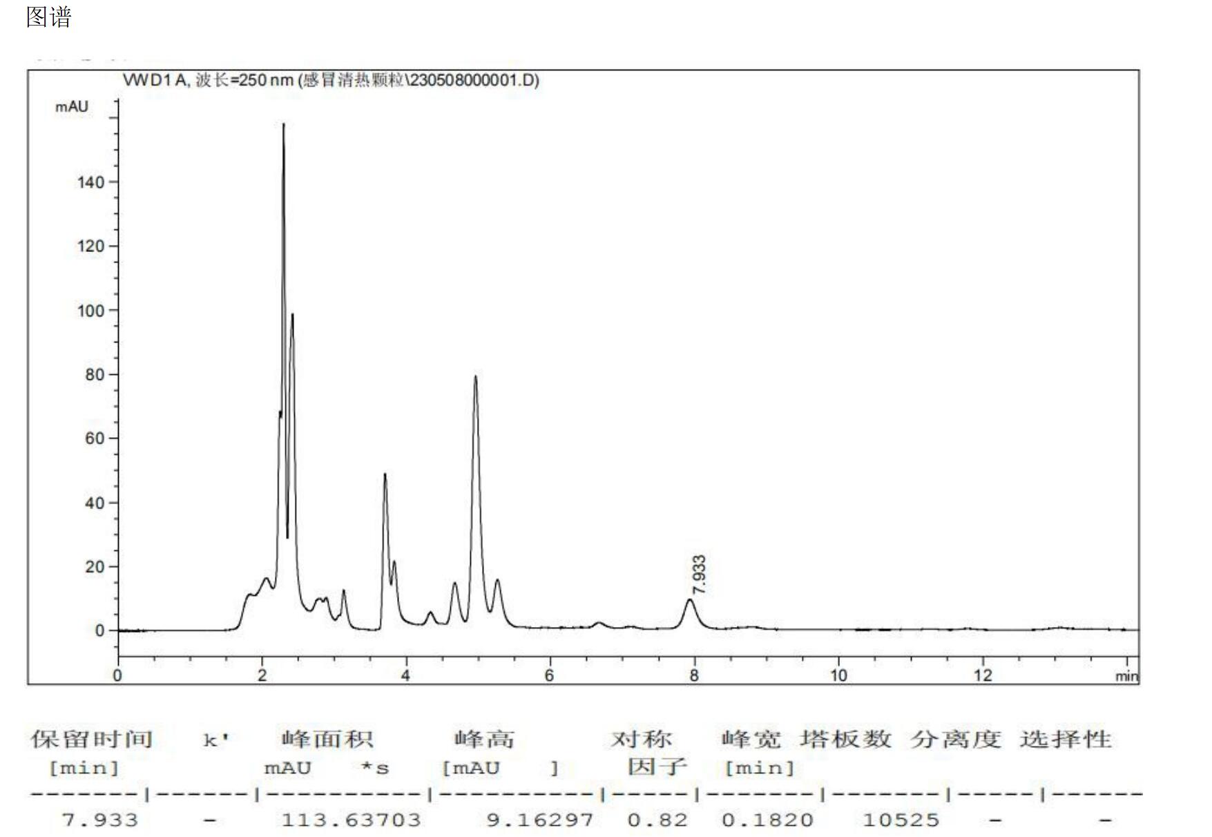 1. 高效液相色譜(HPLC):可以分離出感冒清熱顆粒中的各種藥物成分,如對乙酰氨基酚、氨芐西林、撲爾敏、氯雷他定等。樣品經(jīng)過適當(dāng)處理(如提取、制備)后,通過HPLC分離,利用紫外檢測器或熒光檢測器檢測,可以得到各藥物成分的色譜峰。