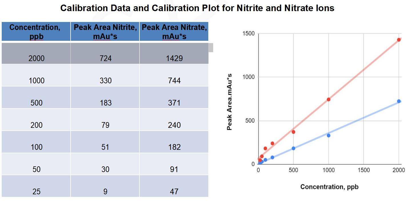 方法說(shuō)明:某藥物中亞硝酸根與硝酸根殘留量的檢測(cè)。我們獲準(zhǔn)公布與分享這兩個(gè)離子的線性數(shù)據(jù)。