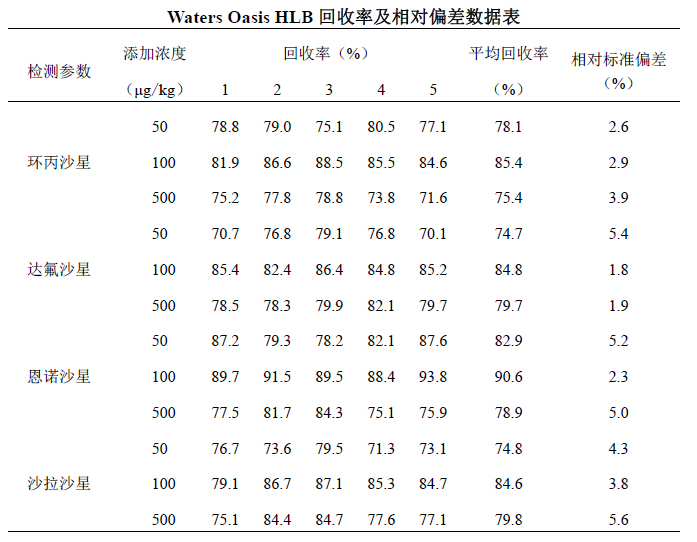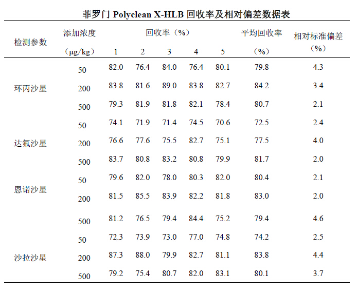 對(duì)照組采用菲羅門公司PolyClean X-HLB 60mg/3ml 與Waters 公司Oasis HLB(60mg,3cc)固相萃取柱,其余步驟相同。