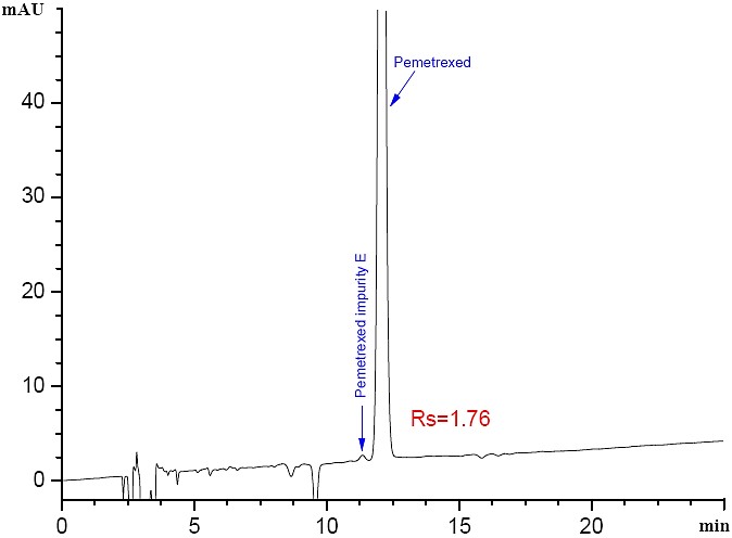 進(jìn)樣體積:20μL(供試品中培美曲塞濃度為 0.24mg/mL,對(duì)映體雜質(zhì)濃度為 0.16μg/mL)