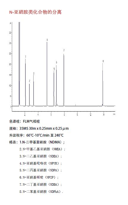N-亞硝酸銨類化合物的分離(基因毒性和元素雜質(zhì)相關(guān)應(yīng)用圖譜)菲羅門氣相柱