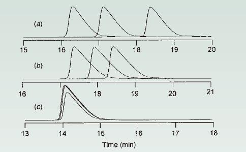 圖10a顯示了以非常淺的梯度(30分鐘內(nèi)19-24%ACN)連續(xù)三次注射肽樣品的結(jié)果(顯示了一種多肽樣品三次連續(xù)進樣,窄梯度洗脫(30分鐘內(nèi)19-24%乙腈梯度洗脫))。